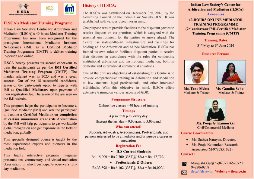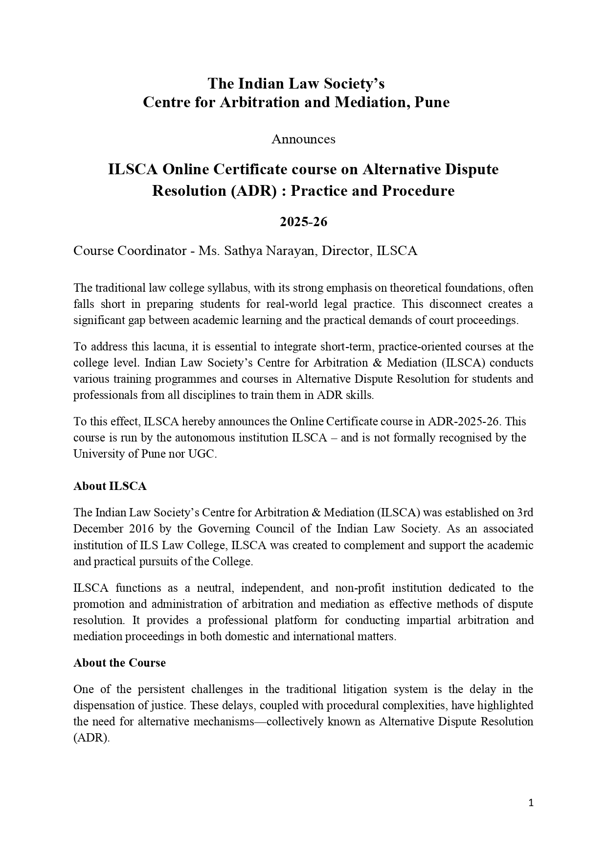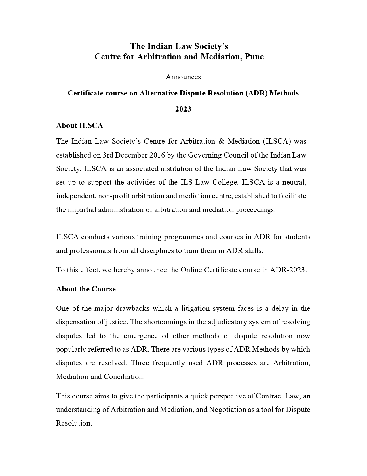 ILSCA Online Certificate Course on ADR (Arbitration, Mediation & Conciliation) for the year 2024-25