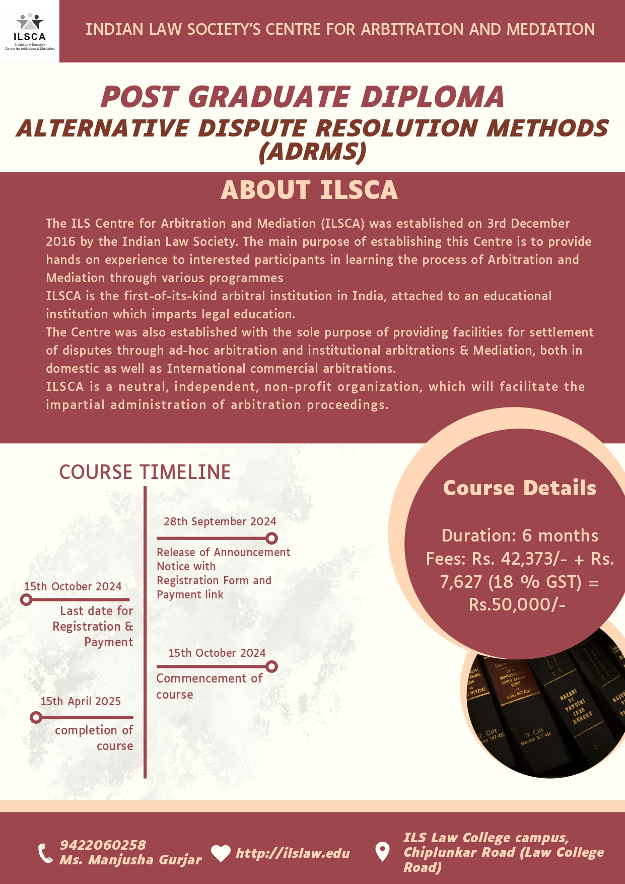 Post Graduate Diploma in Alternative Dispute Resolution Methods for the year 2024-25